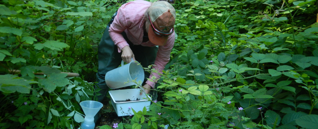 Freshwater systems have an extensive interface with the terrestrial world: river networks snake across a matrix of land. Classic work in ecosystem ecology established that a large part of the material and nutrients in freshwater food webs come from the terrestrial side of this interface. We are interested in the fate of these terrestrial subsidies and their effects on freshwater ecosystem functioning. The configuration of both the terrestrial landscape, and of reaches and habitats within a river or stream network, is important to the quantity and distribution of resources, and their consumption by aquatic organisms. We use a combination of field surveys, experiments, and geostatistical modeling to tease apart these processes.